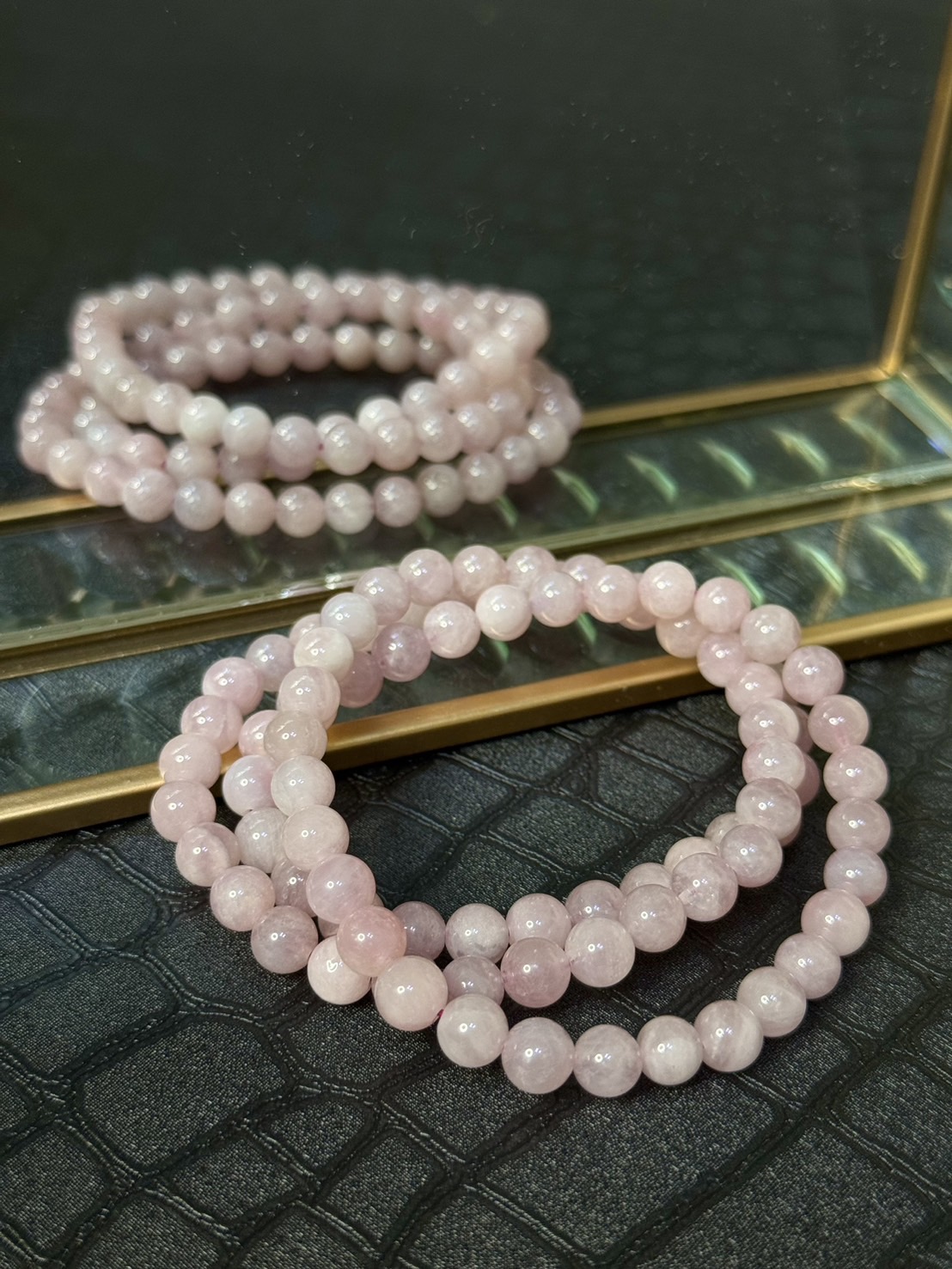 紫馬粉多圈手串(Rose Quartz)是一款充滿柔美與靈性力量的寶石飾品,由紫馬粉石製成。